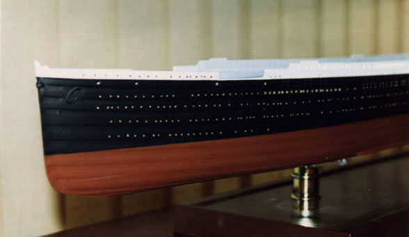All the portholes have been rimmed with brass paint and filled with Krystal Klear. The forward hawse has been drilled out and the Well Deck cut out has been straightened. The port hole has been added just forward of the Well Deck cut out. The super structure gluing tabs have not yet been removed. |
