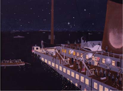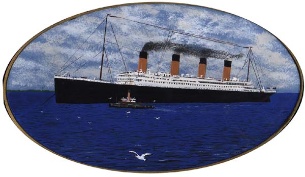a pencil drawing of the Titanic he has done based on a Ken Marschall