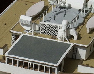 forward of Funnel No. 1 on the Deckhouse roof behind bridge/