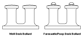 next to the Hawser holes. Measure the 13mm from the bollard's